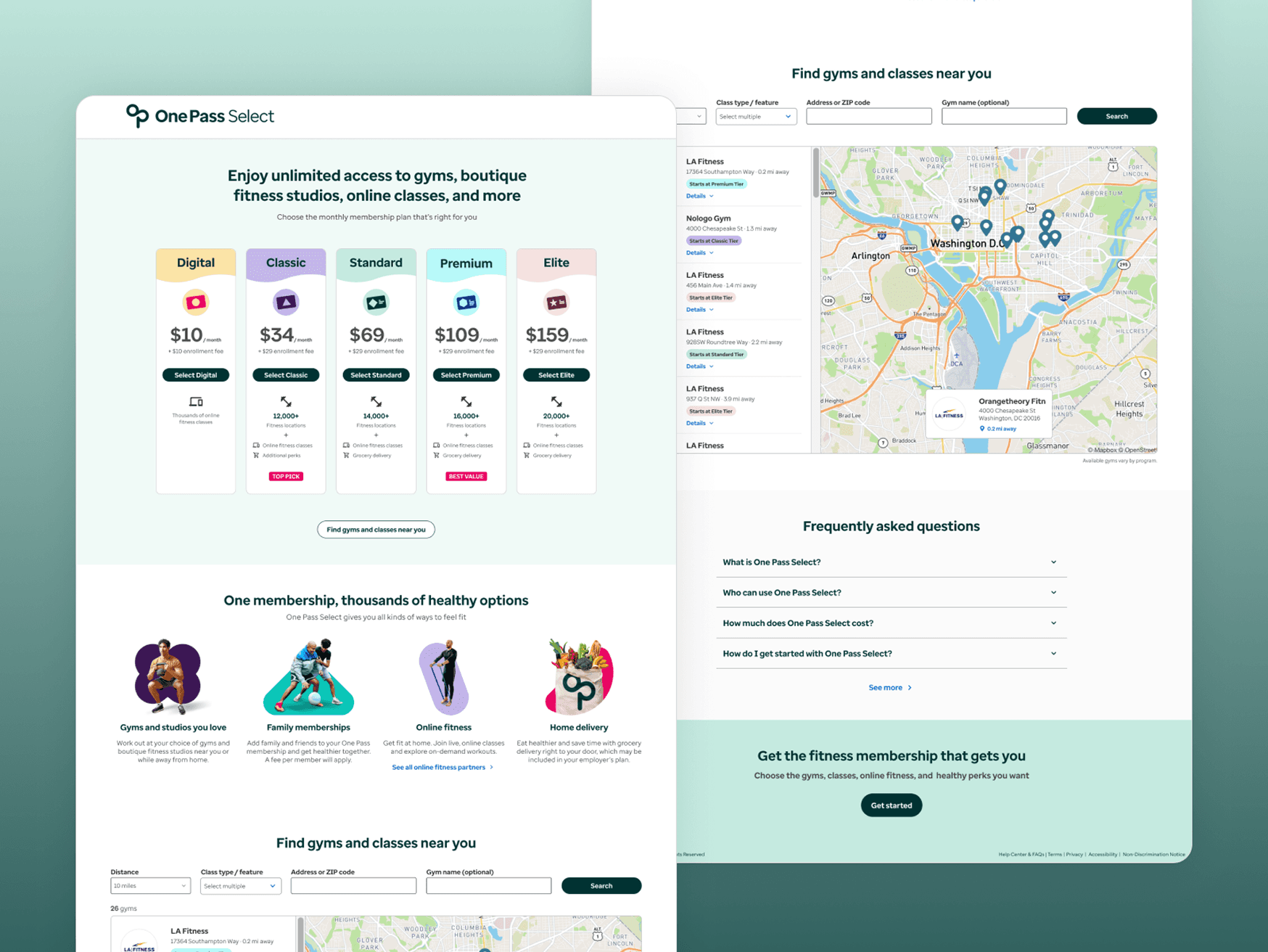 Led content strategy and UX for the One Pass rebrand by establishing a refreshed brand identity, voice, and content system that positioned One Pass as a cohesive fitness benefit.
