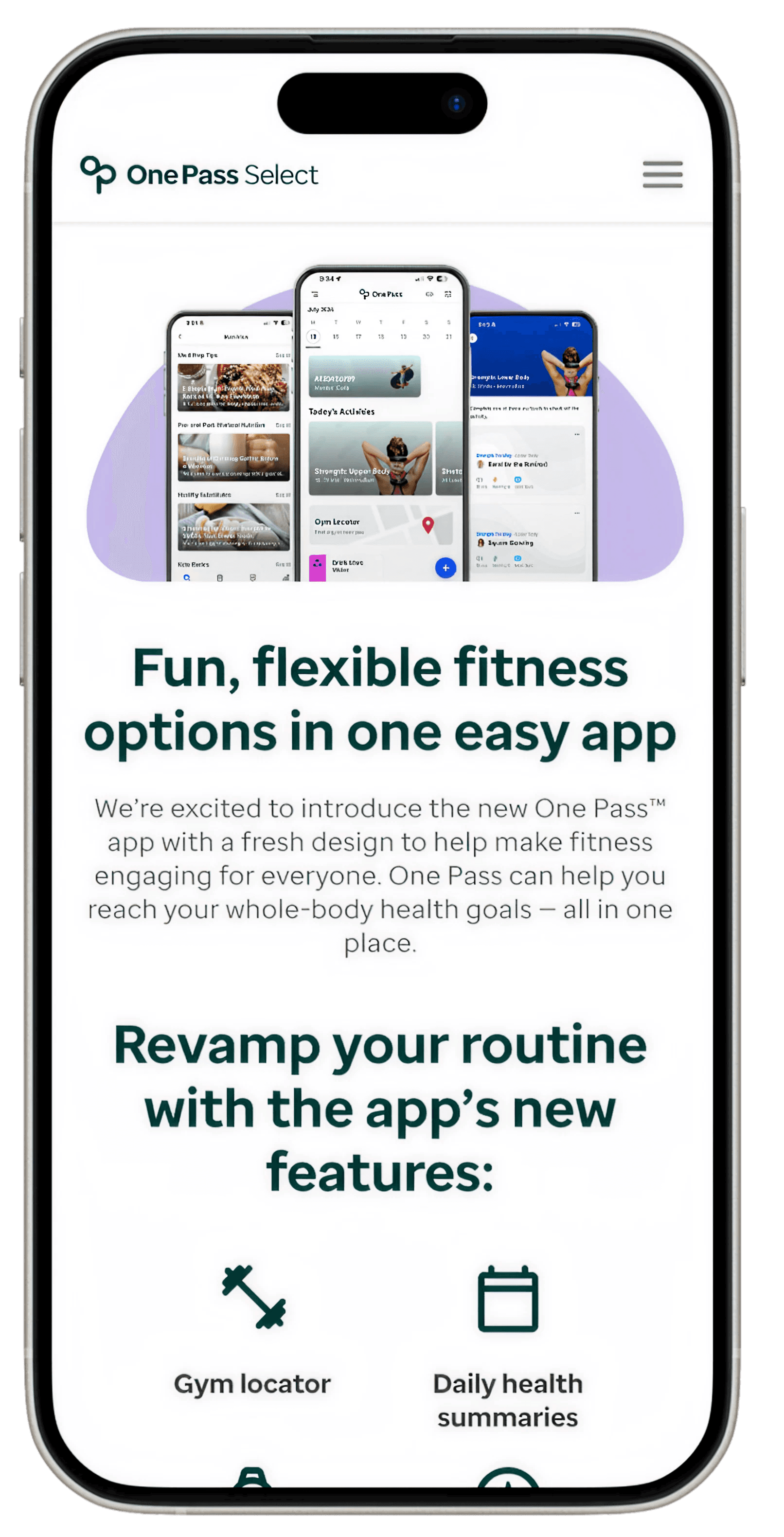 Led content strategy to establish One Pass's refreshed identity, language, and positioning framing it as a meaningful fitness benefit, not just a gym perk. Developed voice and copy across enrollment, onboarding, marketing, and in-product content.