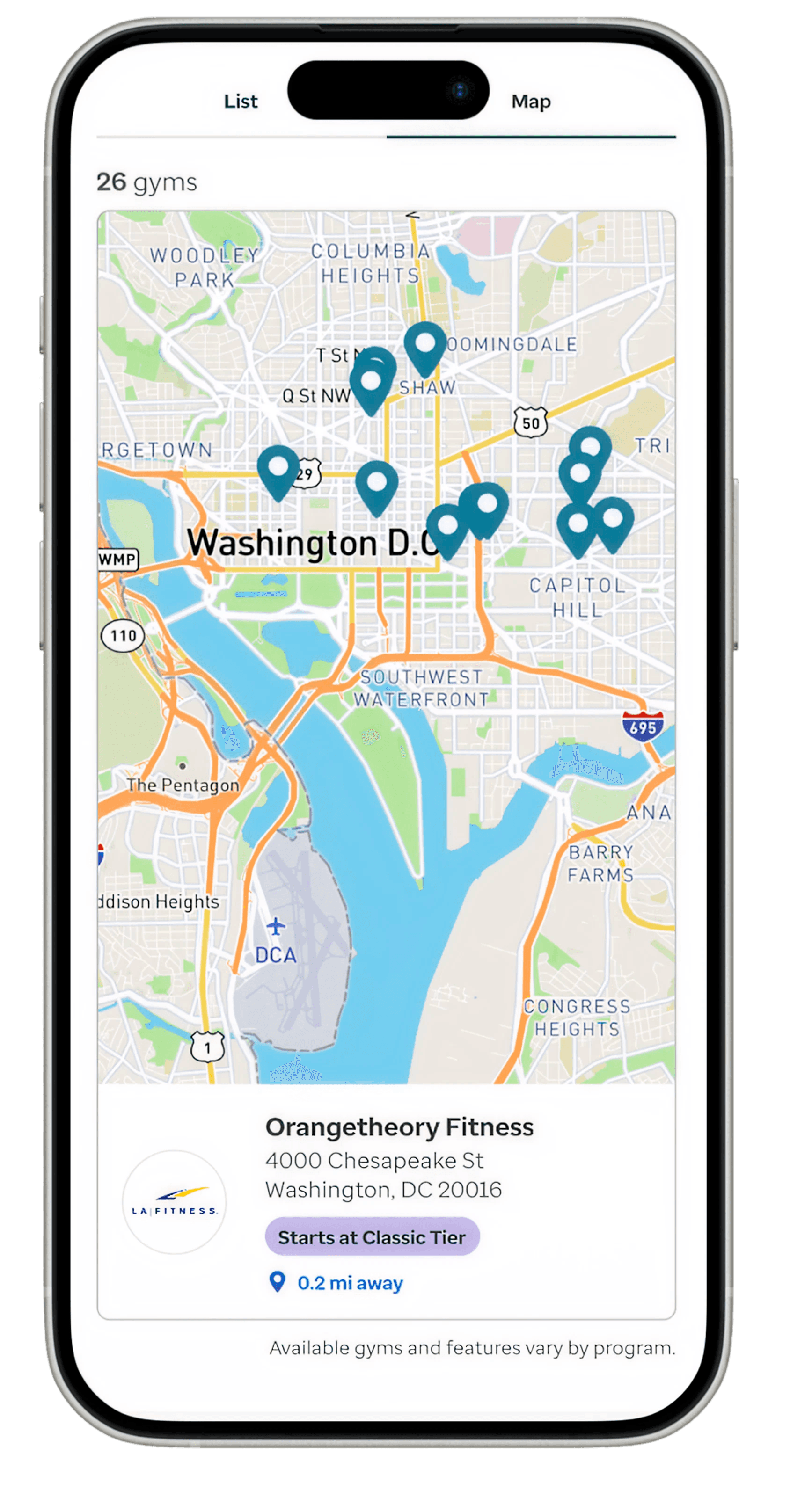Thousands of in-person gym and fitness studio locations. The physical cornerstone of the One Pass benefit.