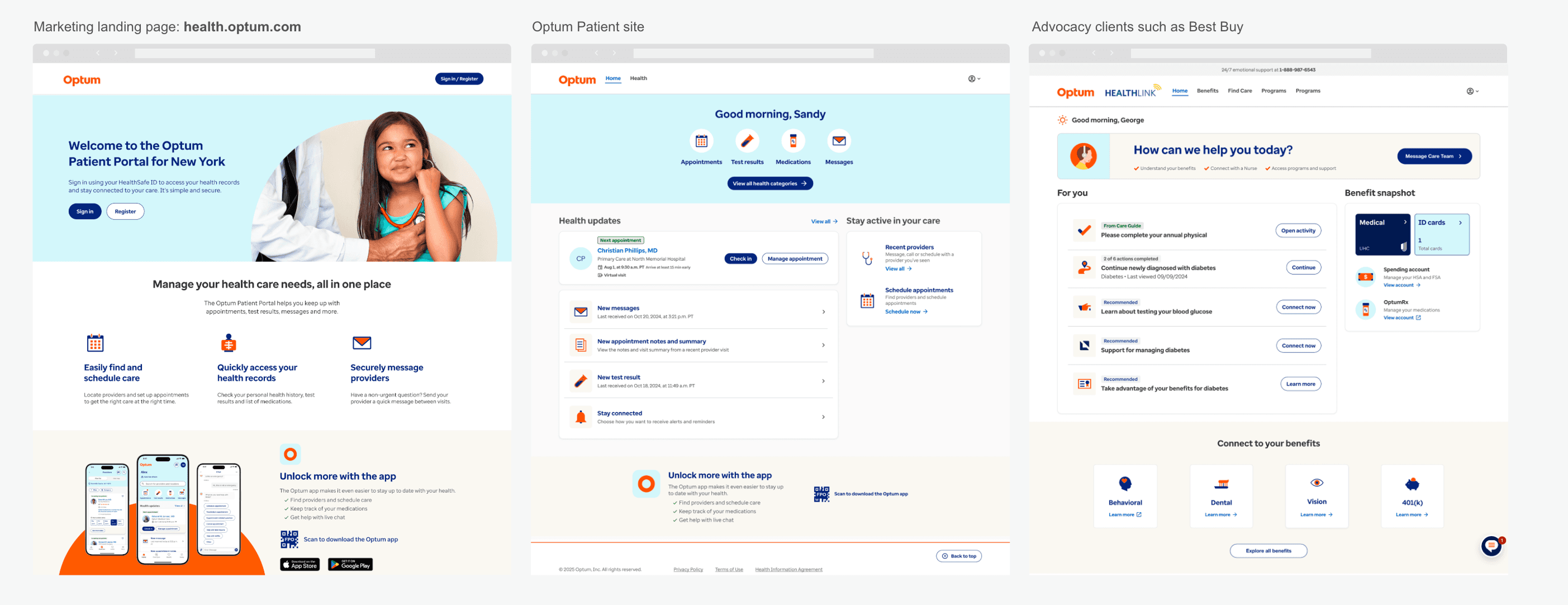 Members were navigating their health and benefits across several separate digital products: the Optum Guide, the Patient app, and the Rx/pharmacy platform. Each with its own experience, language, and logic.