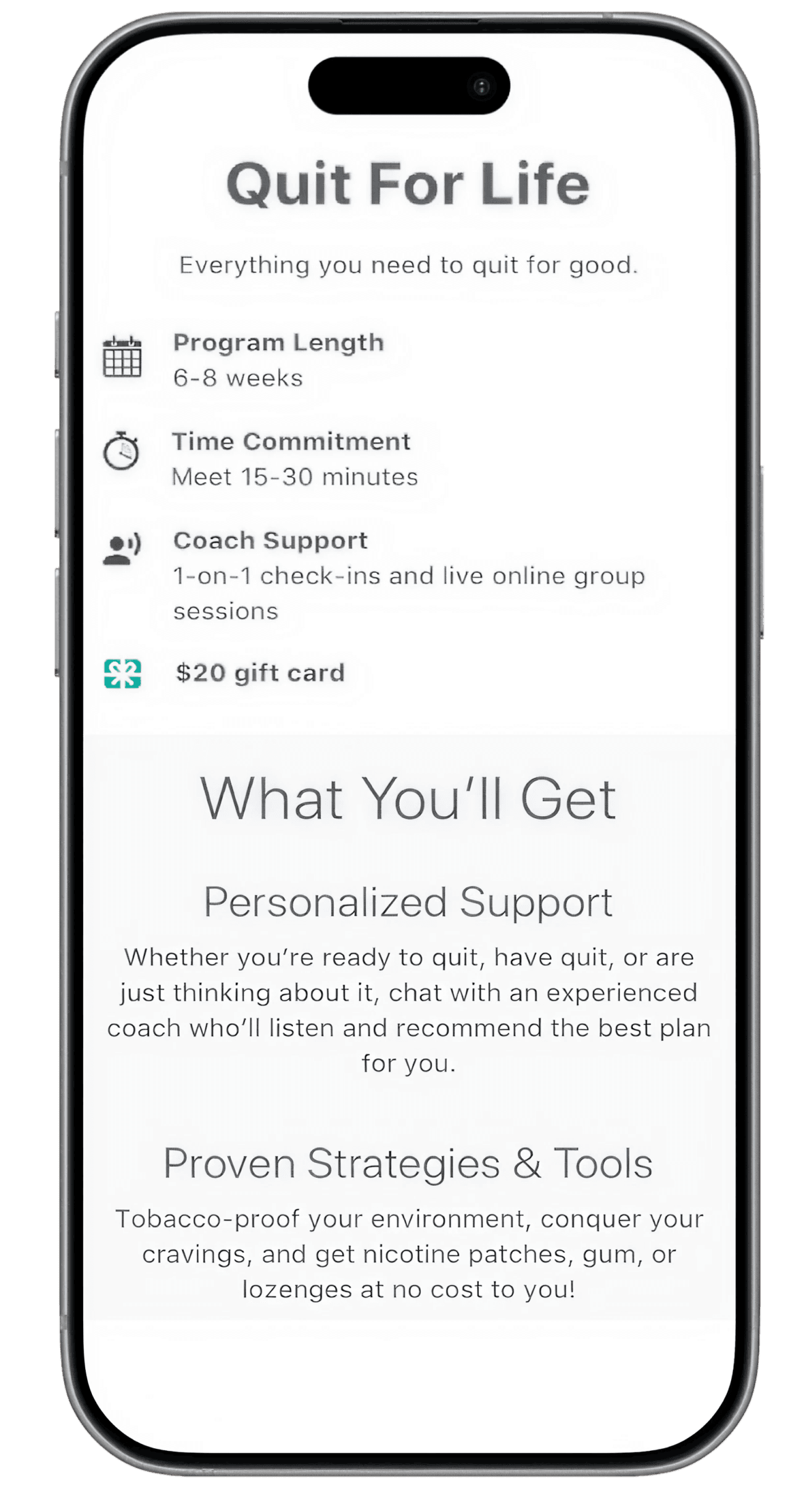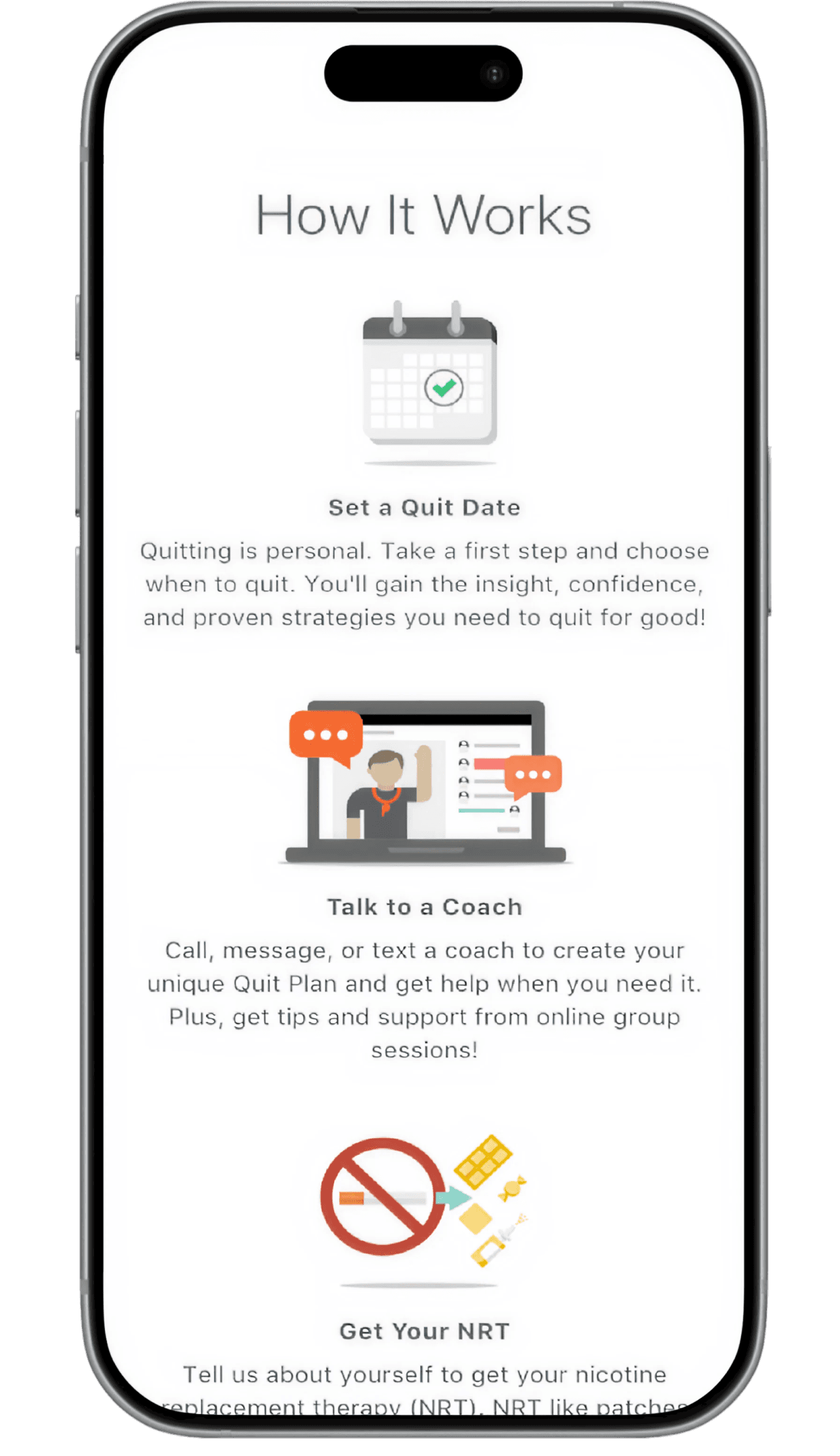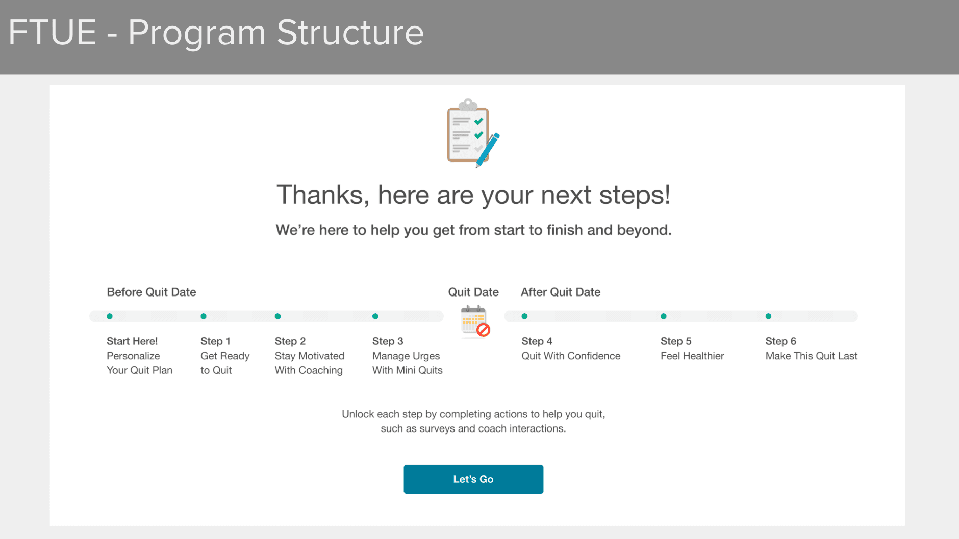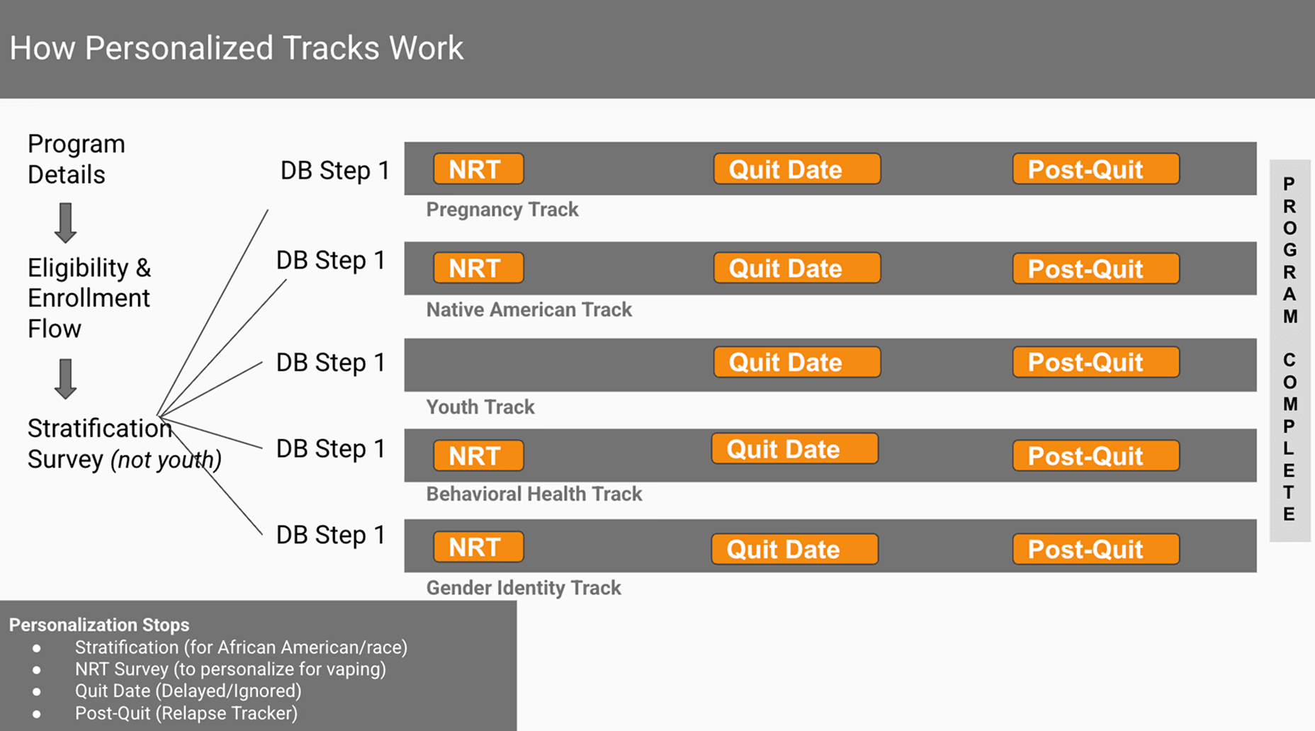 Developed distinct content experiences for five member populations: smokers, vapers, dual users, pregnant women, and those with co-occurring mental health challenges. Each track required tailored language, pacing, and content logic.