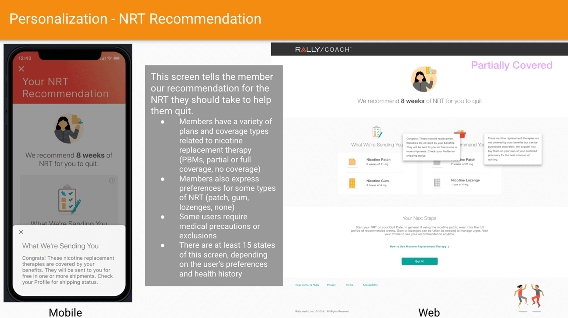 Created the Rally Coach style guide defining 20+ terms with usage rules and legal guidance. Established warm, encouraging tone principles that balanced clinical credibility with genuine human warmth.