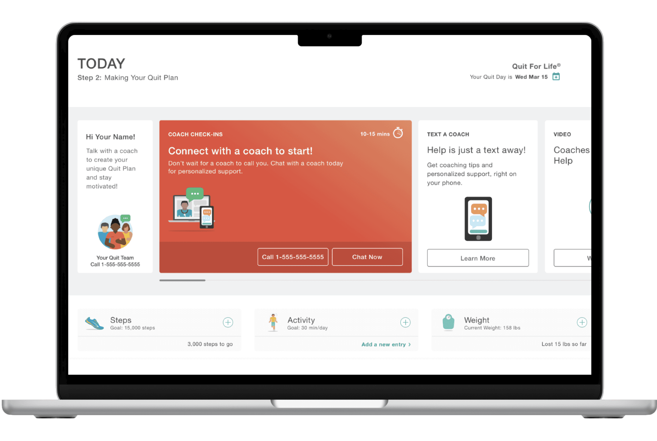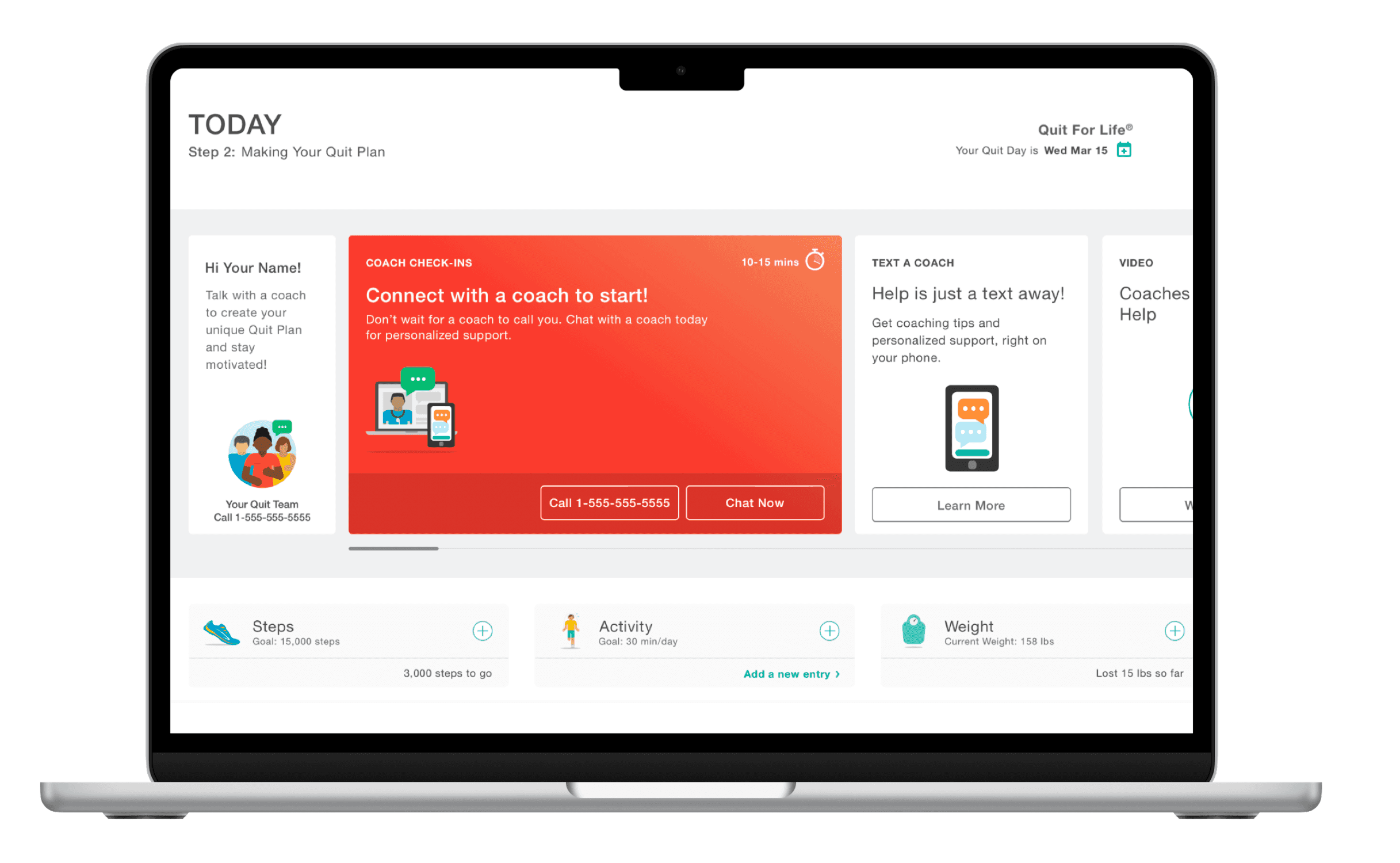 Quit For Life is a digital smoking cessation program offered through employer health plans. I joined Rally Health as a UX Writer and quickly progressed to Senior UX Writer, owning the complete member content experience across enrollment, coaching interactions, milestones, notifications, and marketing.
